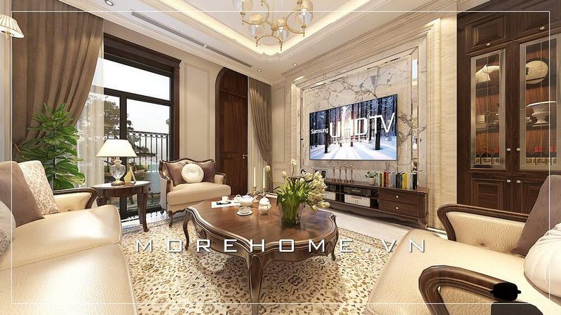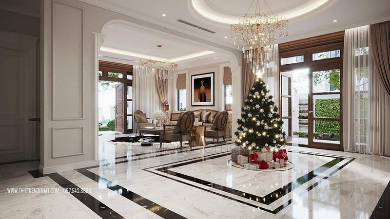 Mẫu thiết kế nội thất biệt thự Vinhomes Riverside là một trong những công trình thiết kế mang đậm phong cách tân cổ điển, sang trọng và quý phái