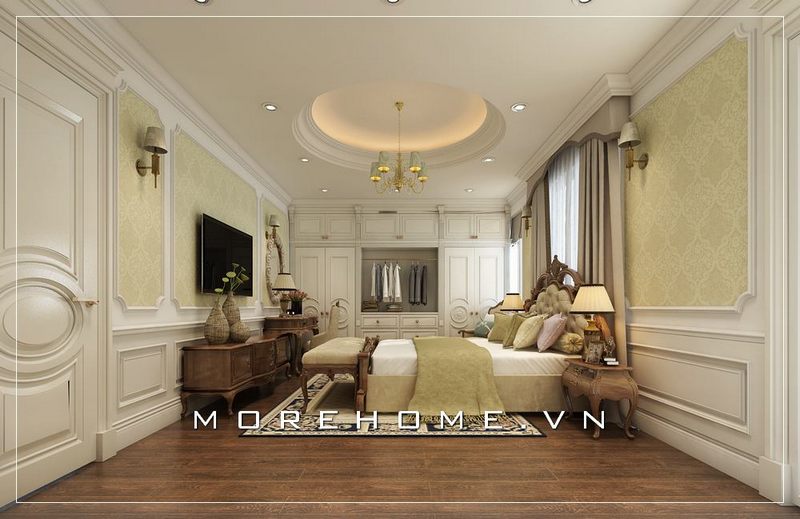 Thiết kế nội thất phòng ngủ chung cư phong cách tân cổ điển