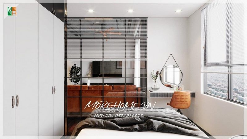 Giúp cho diện tích chung cư được nới rộng với thiết kế bằng vách ngăn kính trong suốt giữa phòng ngủ và phòng khách và cửa sổ. Nhận được ánh sáng tự nhiên trực tiếp vào phòng.