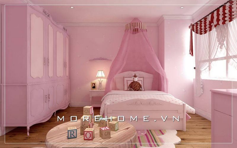Thiết kế nội thất phòng ngủ công chúa siêu dễ thương với gam màu hồng phấn